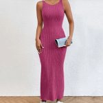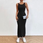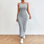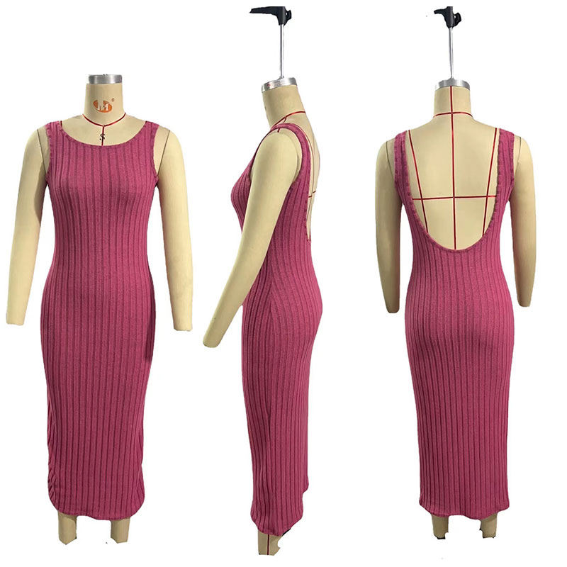 QIAOYI 2023 OEM&ODM Women knitted dress sexy solid color Summer women casual knit dresses ladies long dress