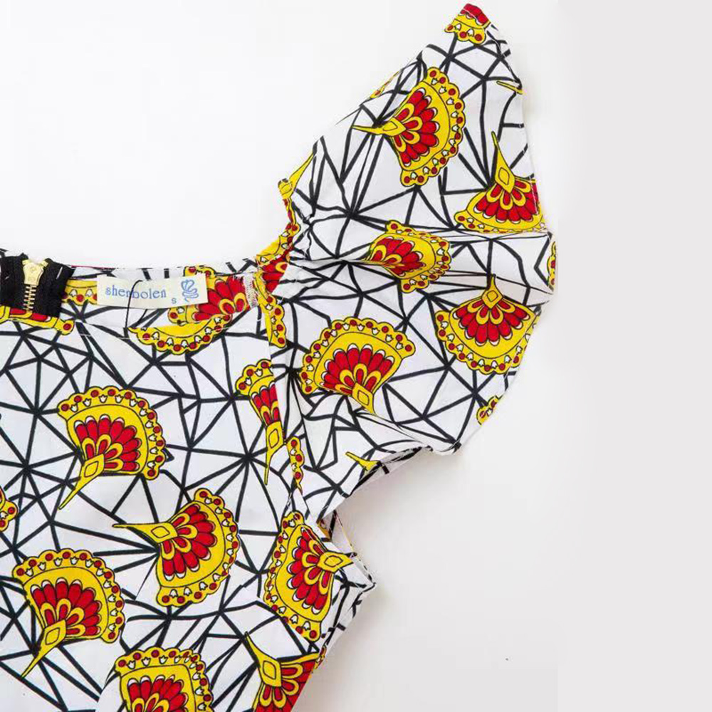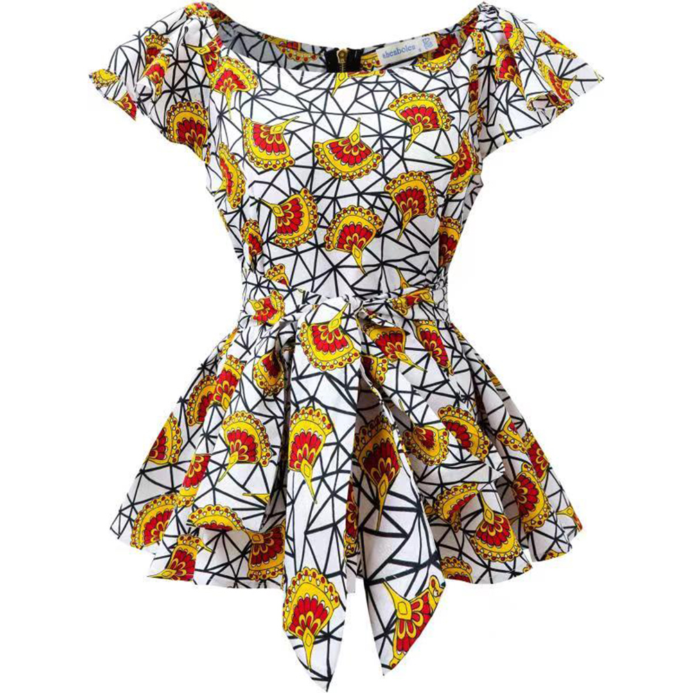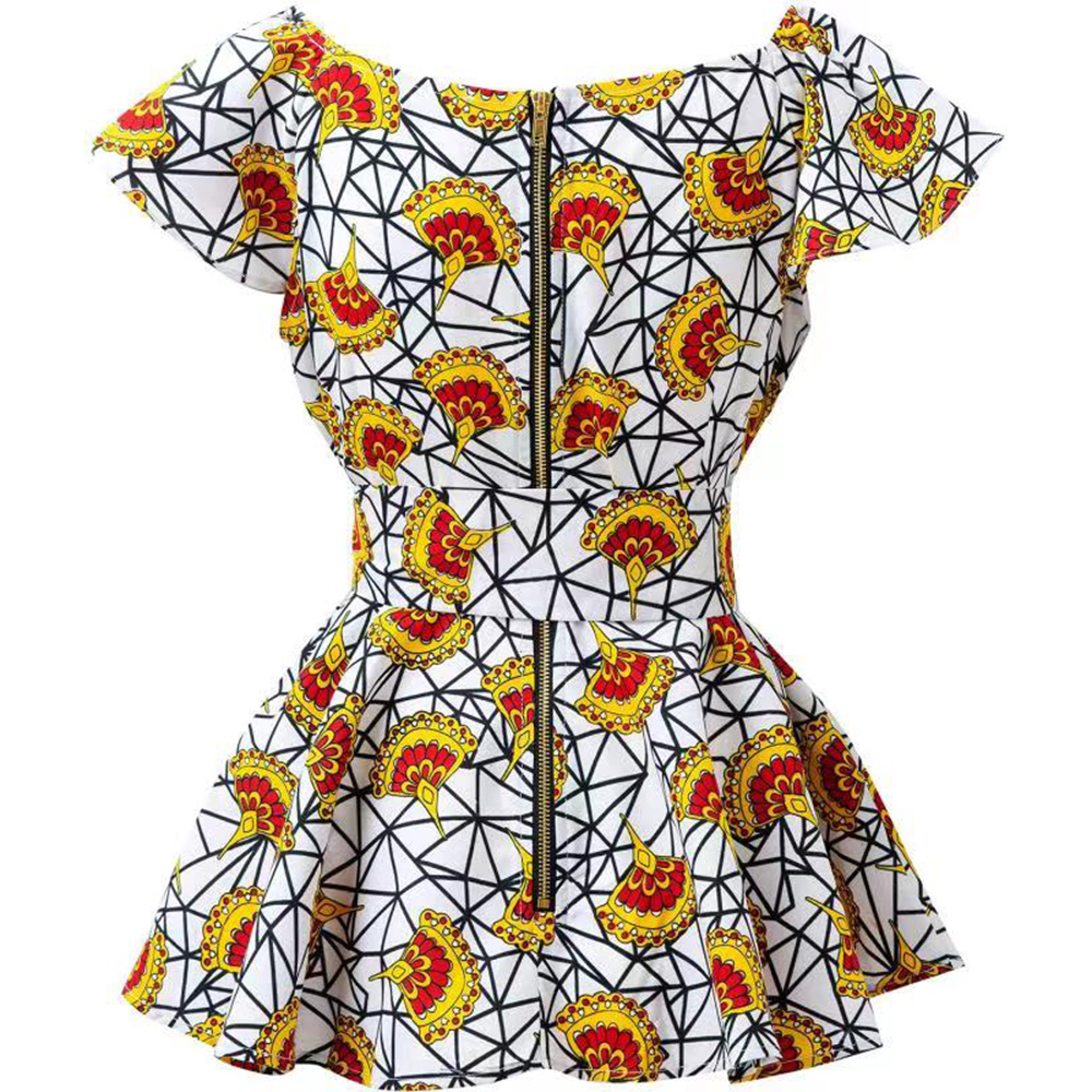 ready to ship white Ankara Print African Wax Pattern Round Neck Top For Women With Waistband