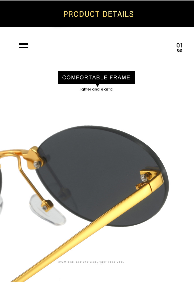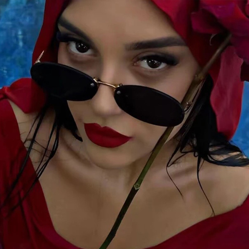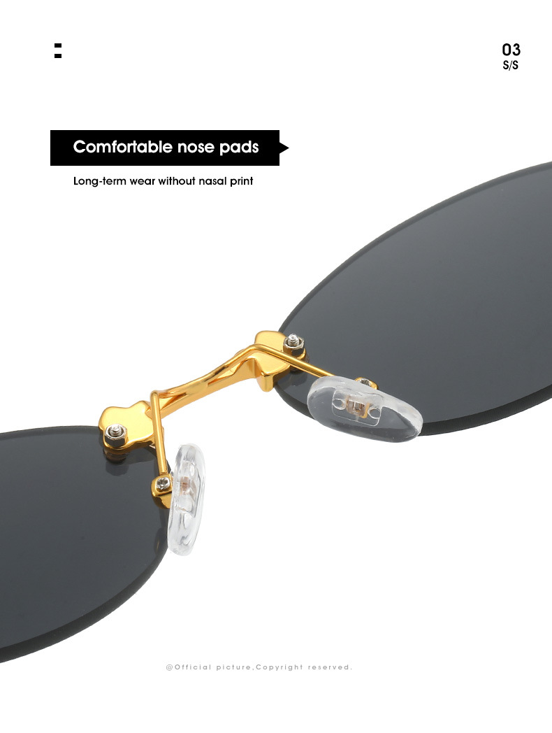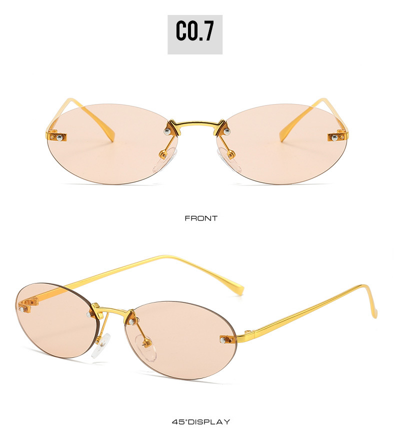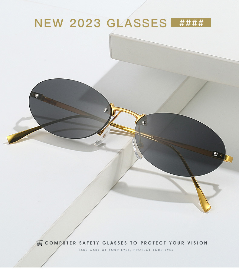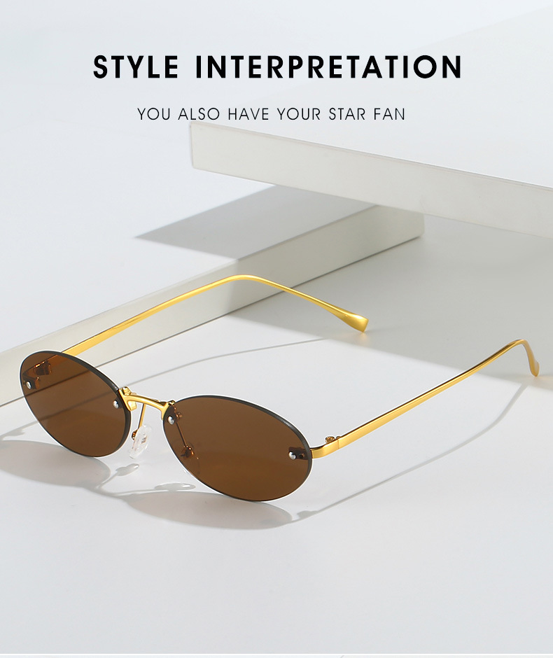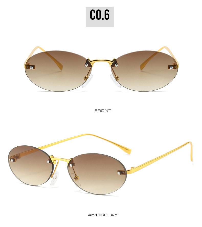 Retro Small Frame Rimless Glasses Design Trendy Shades Female 2024 New Frameless Metal Oval Sunglasses For Women