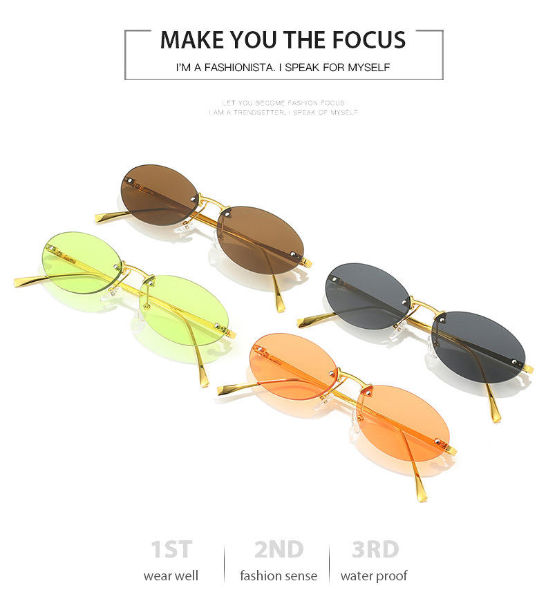 Retro Small Frame Rimless Glasses Design Trendy Shades Female 2024 New Frameless Metal Oval Sunglasses For Women