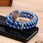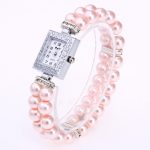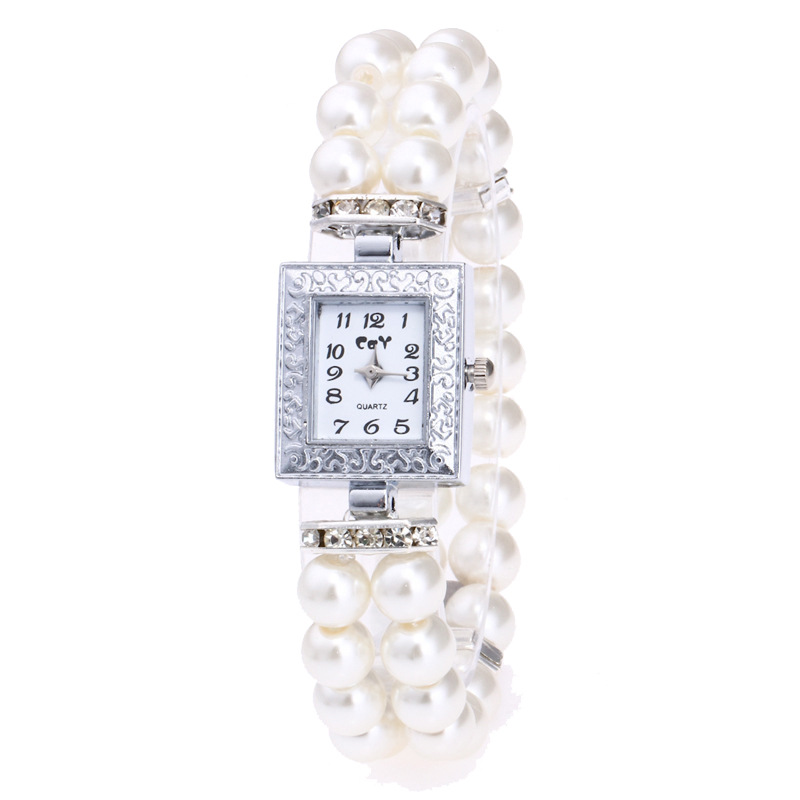 Round diamond decorated small dial leisure watch women’s glass pearl string bracelet quartz watch 2025
