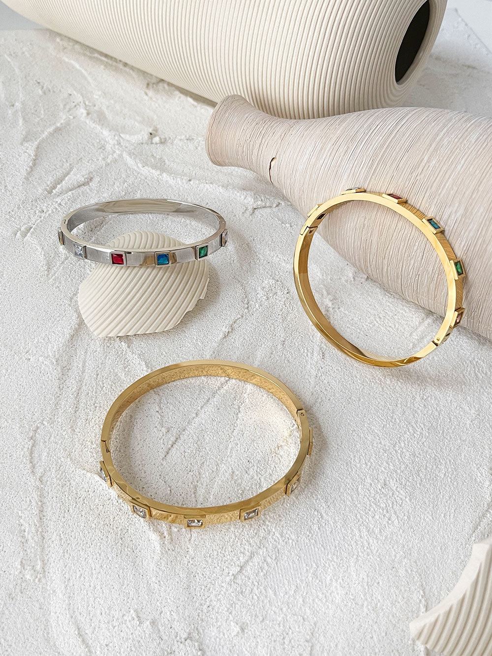Stainless Steel Bracelet Color White Rectangular Zircon Inlaid bangle Bracelet Jewelry customization