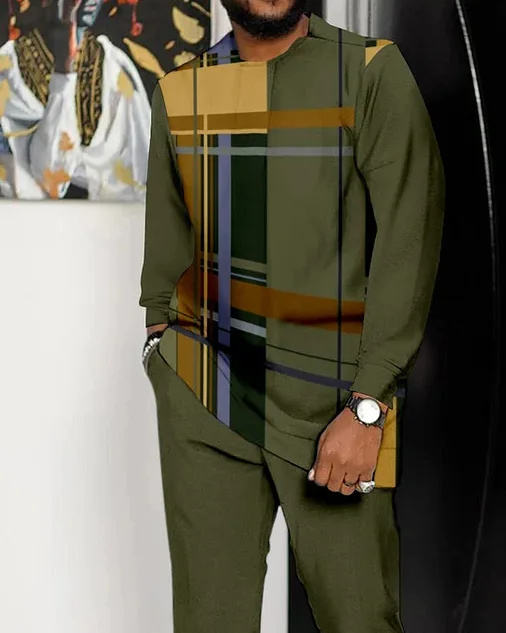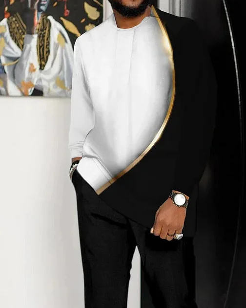 New Design Polka Dots Colorblock Print Long Sleeve Shirt Walking Set Cotton Breathable Africa Clothes Men Clothing African
