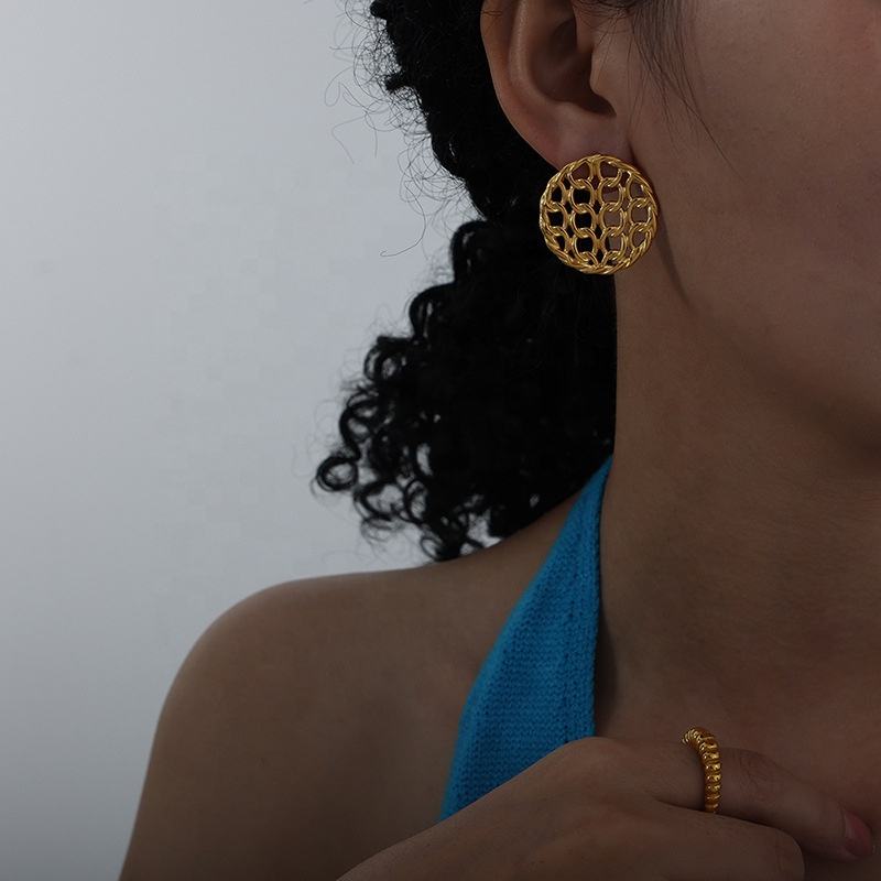 Be the first to review “Vintage Hand Chain Splice Cutout Design Stainless Steel Gold Plated Earrings customization” Cancel reply