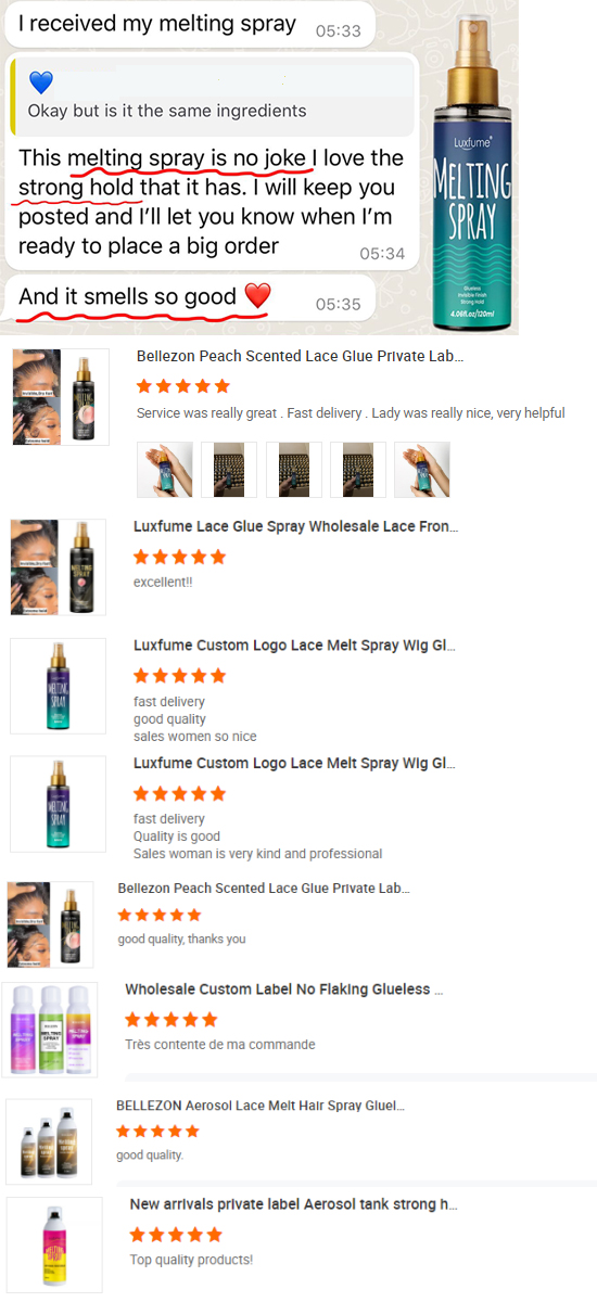 Bellezon Custom Glueless Extreme Hold Quick Drying Clear Melting Spray Lace Glue Wig Adhesive Private Label Melting Spray
