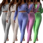 Winter 2023 Women’s Clothing sweater Pyjamas 2 pieces set solid color Knitted Sweater ladies 2 piece sets