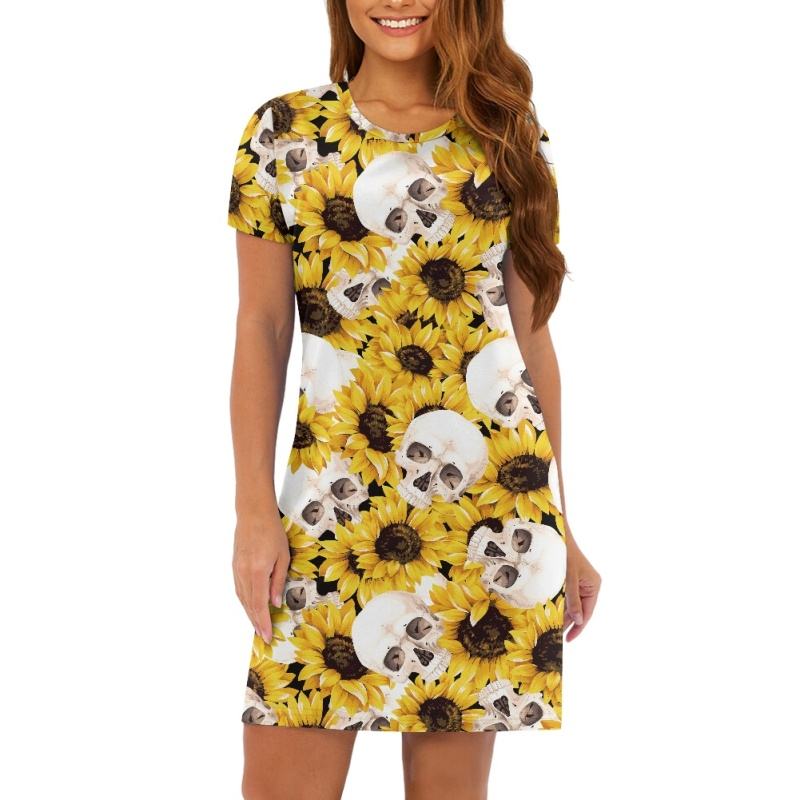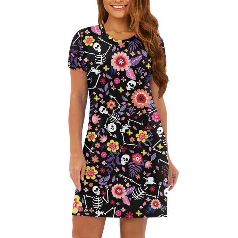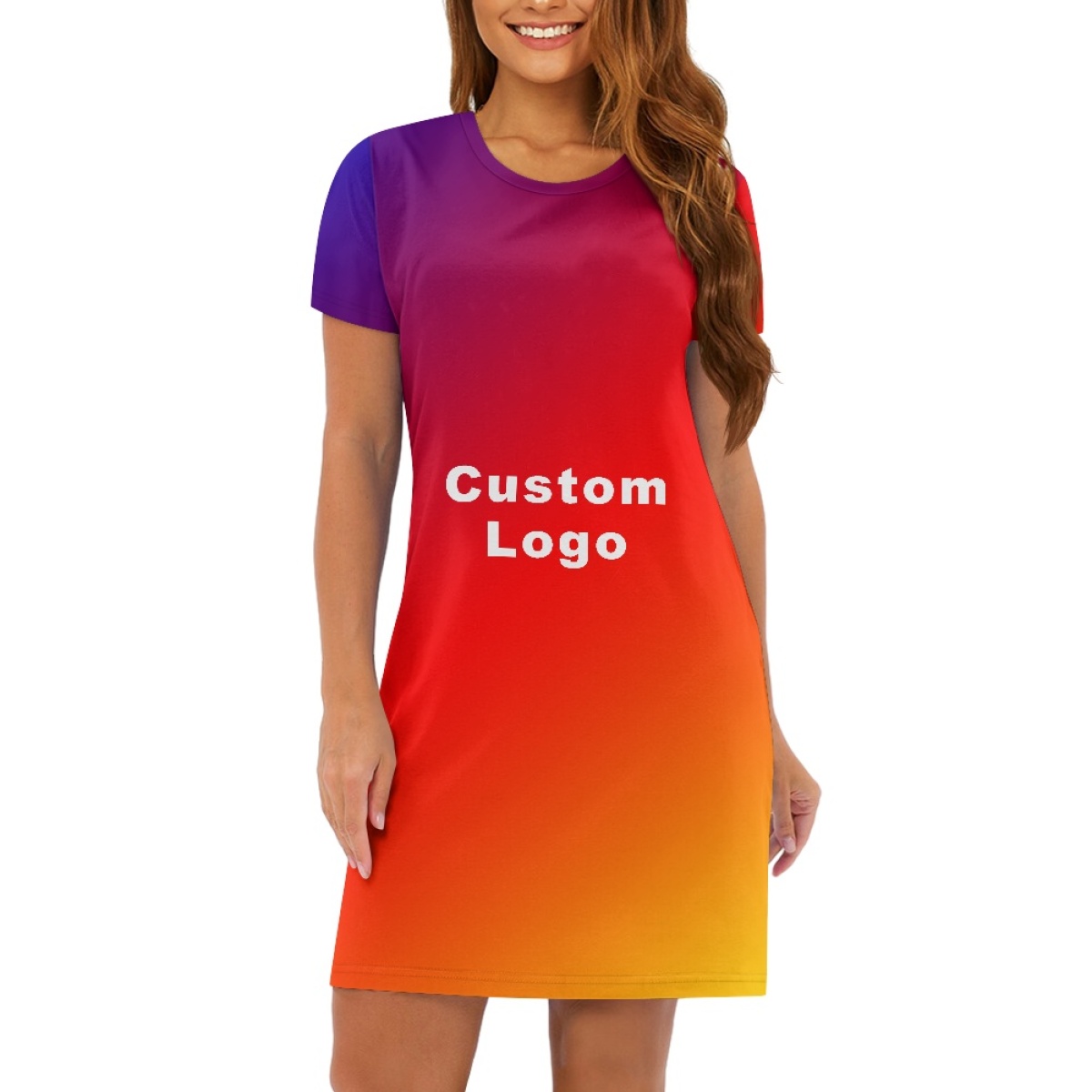 Women Round Neck Short Sleeve Midi Dresses Personalized Custom Design Polyester Dress Wholesale Comfortable Breathable Clothing
